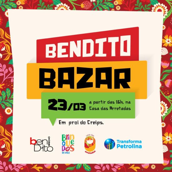 Uma iniciativa que une propósito social, sustentabilidade e solidariedade resultou no ‘Bazar Solidário’, intitulado de ‘Bendito Bazar’. O evento acontecerá a partir das 16h desta quarta-feira (23), em prol do Centro de Recuperação Evangélico Livres Para Servir (Crelps), instituição de Petrolina que acolhe mulheres em situação de vulnerabilidade social.