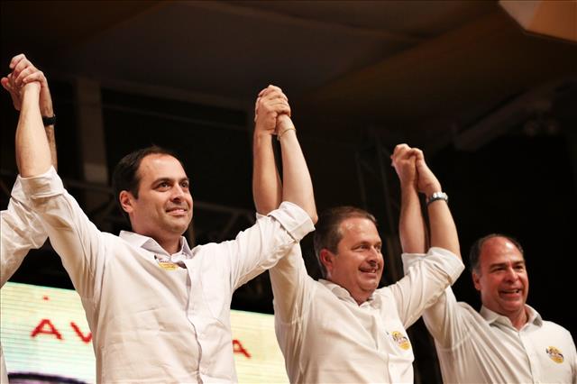 Além de Câmara, do vice Raul Henry (PMDB), do candidato a senador, Fernando Bezerra Coelho, de Eduardo do governador João Lyra Neto, o evento foi prestigiado por inúmeras lideranças da Frente Popular, a exemplo do prefeito do Recife, Geraldo Julio (PSB), do senador Jarbas Vasconcelos (PMDB), deputados federais, estaduais, candidatos, prefeitos, ex-prefeitos e vereadores. (Foto: Rodrigo Lobo/divulgação)
