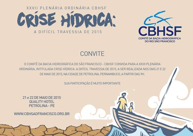 conviteMembros do Comitê da Bacia Hidrográfica do Rio São Francisco promoverão nos próximos dias 21 e 22 de maio duas plenárias em Petrolina, que terão como tema principal “Crise hídrica: a difícil travessia de 2015”. As plenárias acontecerão a partir das 9h, no Quality Hotel, Orla II da cidade, e são abertas ao público.