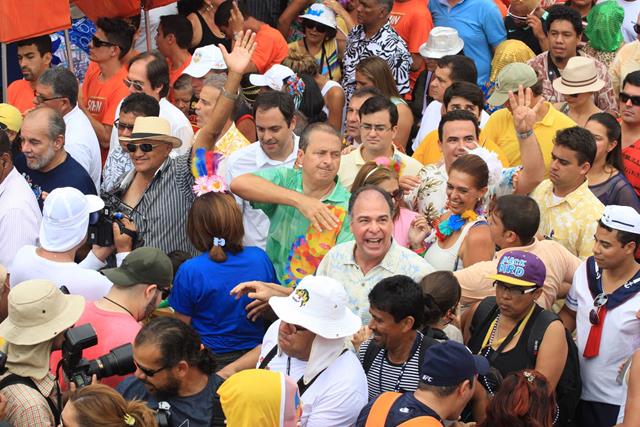 Ao lado de Câmara e dos candidatos a vice, Raul Henry (PMDB) e a senador, Fernando Bezerra (PSB), o socialista foi até Bezerros, no Agreste do estado, prestigiar a folia dos tradicionais papangus. Deu tempo também de conferir o carnaval de Pesqueira, também no Agreste. (Foto: Divulgação)