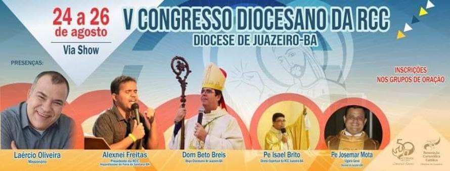 Louvor, oração, pregação, adoração, tenda jovem e congressinho para as crianças. Essas serão as atividades que vão marcar o 5º Congresso Diocesano, em Juazeiro (BA), que este ano tem o tema “Eis que estou à porta e bato”. O evento promovido pela Renovação Carismática Católica (RCC) da Diocese de Juazeiro, acontecerá de sexta (24) a domingo (26) no espaço Via Show.