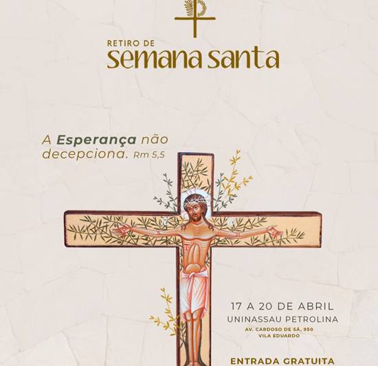 A Comunidade Católica Shalom em Petrolina vivenciará o Tríduo Pascal com um retiro de Semana Santa, que será aberto a toda comunidade católica. O encontro acontecerá na Faculdade Uninassau, na Avenida Cardoso de Sá, 950, Bairro Vila Eduardo.