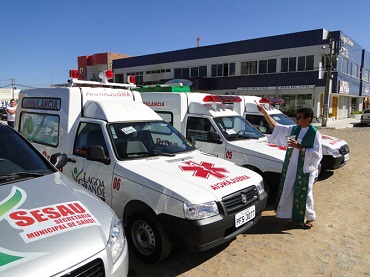 O convênio ficou em R$ 120 mil e teve a intervenção do deputado federal Inocêncio Oliveira. O padre Fernando, da paróquia Nossa Senhora Auxiliadora, fez a benção das ambulâncias. Uma delas foi entregue domingo (08) ao distrito de Vermelhos, pelo secretário municipal de Saúde, Severino Ferreira. Neste domingo (15), ele faz a entrega do veículo em Jutaí. (fonte/foto: Ascom PMLG)