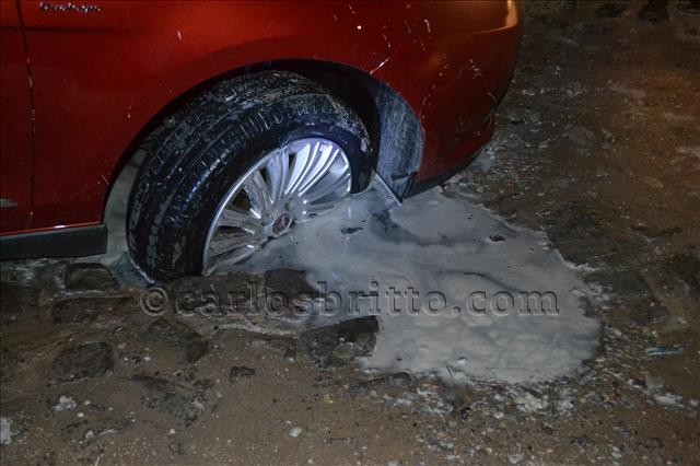 Ontem à noite, ao entrar na garagem da minha residência, foi inevitável. Caí no buraco, que diga de passagem, já está bastante profundo. Com isto estourei um pneu do carro, causando-me prejuízos. Outra é o medo de infiltração nas casas mais próximas. E aí, quem paga a conta?