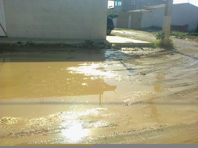 A rua está completamente seca, mas na porta da minha casa continua a lagoa. Os carros e motos só faltam passar pela calçada, não posso nem deixar o carro na porta pois o mesmo, se passar um outro veículo, fica completamente coberto de lama. Essa é a situação que estou passando, como todos da minha rua.