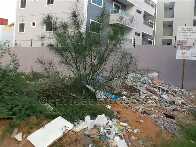 Agora virou moda, com o aumento das construções em Petrolina. O entulho é colocado nos terrenos vizinhos, durante a construção, e depois que esta é concluída ninguém providencia a limpeza.