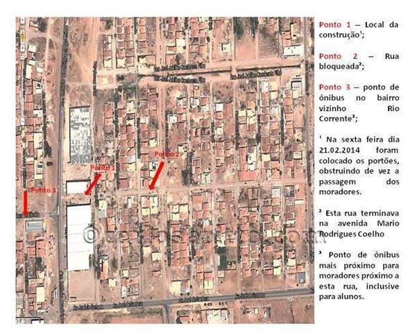 O bairro, como já citado em outras reclamações aqui postadas, possui ruas sem nenhum pavimento, dificultando o acesso de viaturas policiais, para rondas, ambulâncias e carros -porventura um carro de bombeiro. Sendo assim, uma construção que obstrua qualquer rua irá dificultar ainda mais o acesso destes veículos. Já que o bairro não possui um representante, venho através desta reclamação pedir um posicionamento da Prefeitura em relação a situação citada.