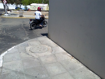 Em tom de desabafo, ele comenta ao Blog que a construção fere os padrões, pois coloca em risco os pedestres que circulam por ali, já que os mesmos perderam o direito de circular pela calçada.