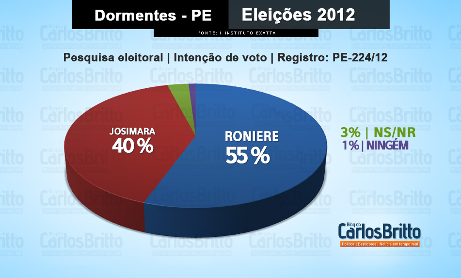 Em Dormentes (PE), no Sertão do São Francisco, o candidato a prefeito Roniere Reis (PSB) lidera as intenções de voto com 55% da preferência do eleitorado. A candidata de oposição, Josimara Cavalcanti (PTB), tem 40%.