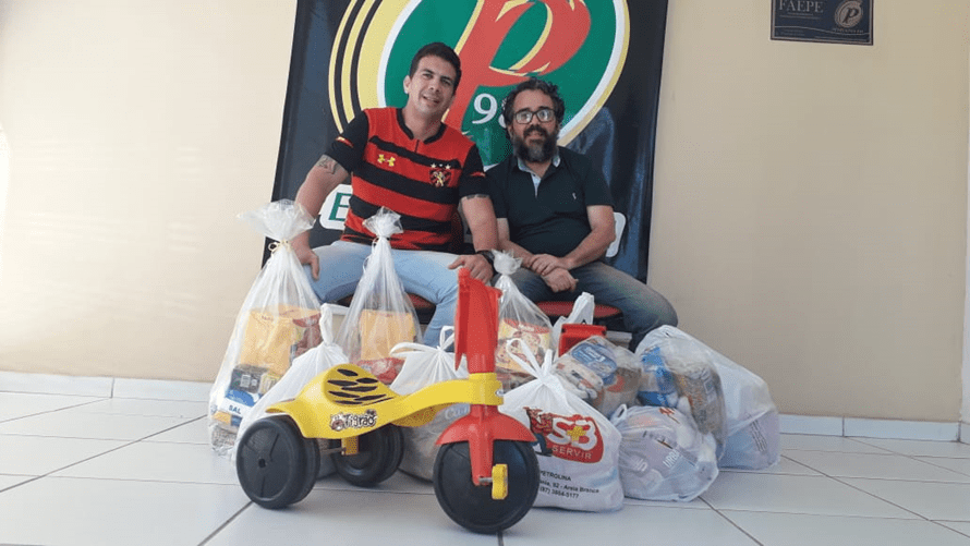 Todo o material, que vai de brinquedos até alimentos não perecíveis, foi arrecadado no jogo do Sport contra o Atlético-GO pela Série B, no último dia 30/11. Antes da entrega, tivemos a oportunidade de bater um papo bem descontraído com nossos amigos comunicadores, Edenevaldo Alves e Ricardo Souza.