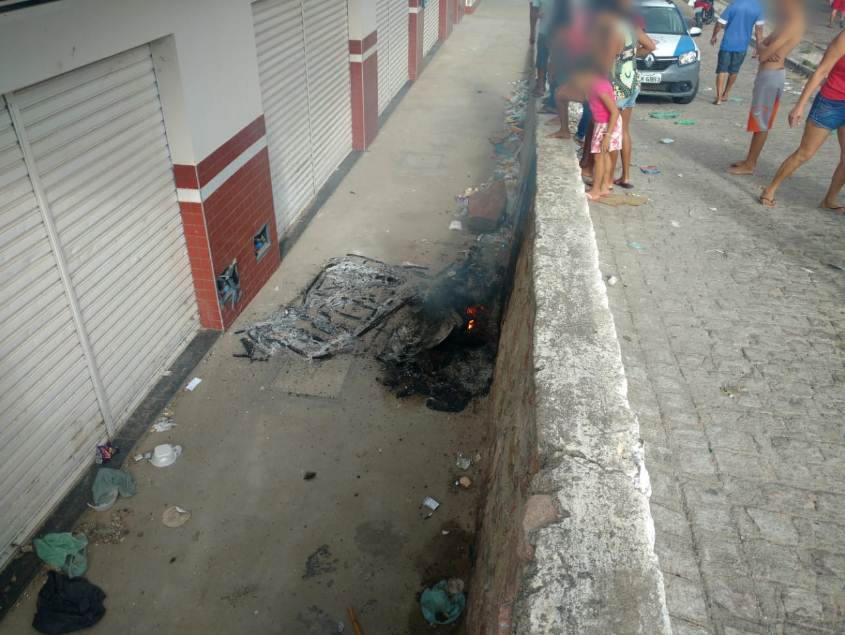 O corpo estava sobre uma calçada, em frente a alguns estabelecimentos comerciais. A Polícia Militar (PM) foi acionada e isolou a área até a chegada de peritos do Departamento de Polícia Técnica (DPT).