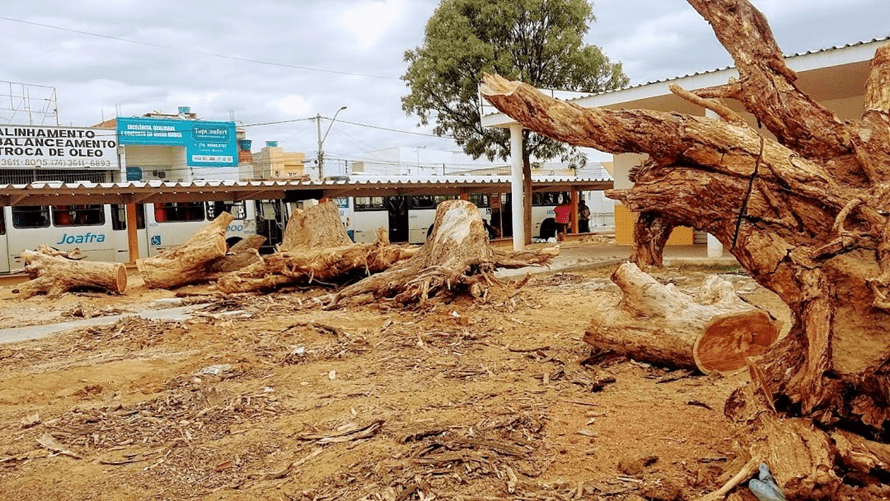 O corte de algumas árvores nas imediações do terminal urbano de passageiros, em Juazeiro (BA), provocou indignação e polêmica. Pelas redes sociais, as reclamações aos órgãos competentes foram inevitáveis.
