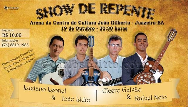Quatro dos maiores repentistas do Brasil – Luciano Leonel, João Lídio, Rafael Neto e Cícero Galvão – prometem surpreender o público regional com um repertório de repentes e belos versos em rimas de sonoridades perfeitas e inimagináveis.