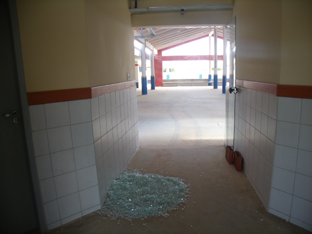 Eu não saberia esplicar tanta ingenuidade ou se é burrice mesmo o fato de colocarem portas e janelões de vidro, mais cedo ou mais tarde isso iria acontecer. É sabido por todos ate mesmo os menos estudados que mesmo que haja vigilantes (Dormilantes) não teria segurança nenhuma, Então pq tentar a sorte? Vocês tem que lembrar que ali vão lidar com crianças, isso quer dizer que alguem ou alguma criança pode quebrar aquelas portas de vidro e quem sabe ate se acidentar quebrandoas em seu proprio corpo. Nossa existem engenheiros que mais parece que aprendeu a trabalhar em Galinheiros e nossos administradores meu Deus…