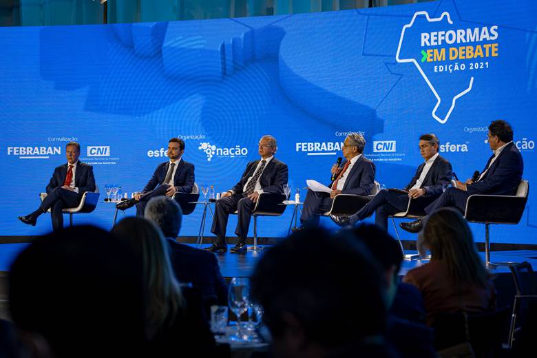 Braga de Andrade participou da Live ‘Reformas em Debate: Os impactos econômicos da reforma tributária’ com o ministro da Economia, Paulo Guedes, deputado federal e relator da reforma tributária, Celso Sabino (PSDB-PA), CEO Esfera, João Carlos Camargo e o presidente da Federação Brasileira de Bancos (Febraban), Isaac Sidney. O debate foi promovido pela CNI, Febraban e co-realizado pela Nação Consultoria Estratégia e a Esfera nesta quinta-feira (22).