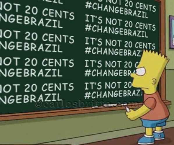 Até Bart Simpson aderiu aos protestos que vêm sendo realizados no Brasil em prol de mudanças. A repercussão internacional das manifestações comoveu o criador do desenho.