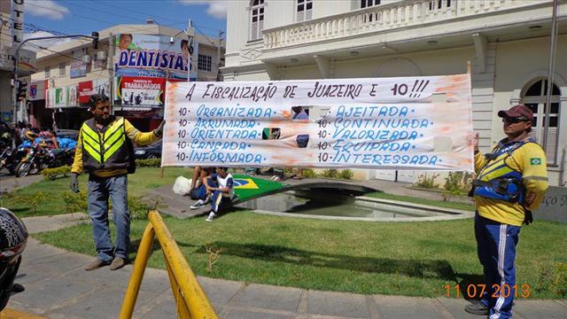 A criatividade dos manifestantes nos últimos protestos tem chamado a atenção, tanto em Petrolina quanto em Juazeiro. Na última quinta-feira (11), quando vários grupos sociais e sindicatos foram às ruas em todo o país, alguns mototaxistas protestaram em frente à Prefeitura de Juazeiro.