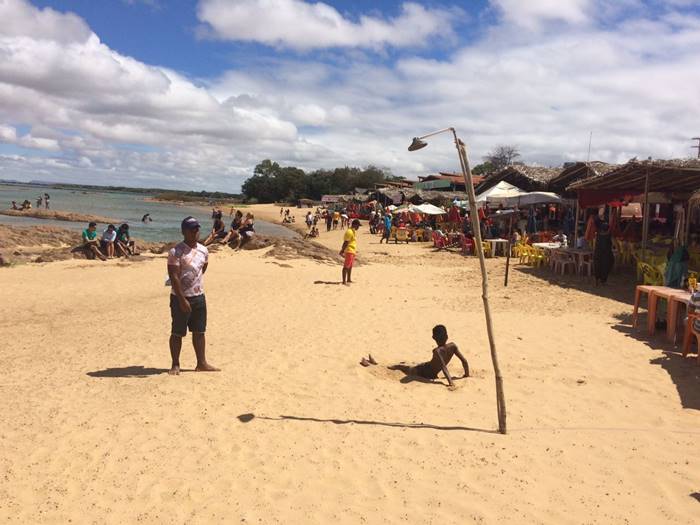 Onde era água há bem pouco tempo, agora os frequentadores batem papo nos bancos de terra. Até o atracadouro das embarcações que chegam ou saem da ilha ficou bem diferente.