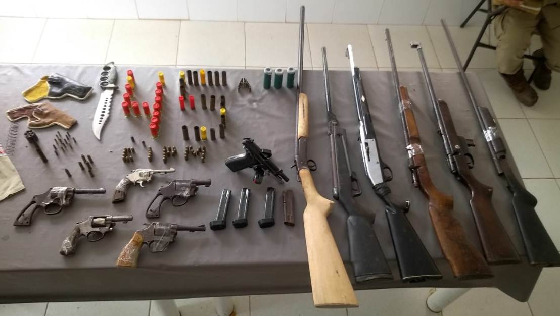 Foram recolhidos pelos PMs três revólveres calibre 38; dois revólveres calibre 32; três rifles calibre 32; duas espingardas e uma carabina. Além disso, também foram apreendidos carregadores, mais de 100 munições de vários calibres, uma faca de caça e peças de uniforme da PM. Todo o material apreendido foi encaminhado à delegacia de Curaçá, junto com os suspeitos.