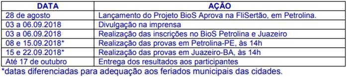 As inscrições podem ser feitas até amanhã (6) nas sede do BioS – localizada em Petrolina na Avenida Pernambuco, Bairro Jardim Paulo Afonso, e em Juazeiro na Avenida Raul Alves, ao lado da America Import Outlet. O telefone do BioS Petrolina é (87) 3861-7605/3861-5947, e de Juazeiro (74) 3613-6872.