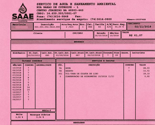 Em Juazeiro (BA), o Serviço de Água e Saneamento Ambiental (SAAE) reforçou o ‘Outubro Rosa’, que tem objetivo de alertar as mulheres sobre a importância da prevenção e do diagnóstico precoce do câncer de mama e câncer de colo do útero. Neste mês as contas de água vão chegar às residências dos usuários na cor rosa (símbolo da campanha), compartilhando dessa forma informações sobre a doença.