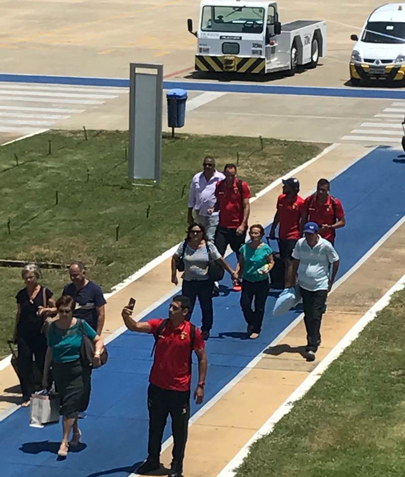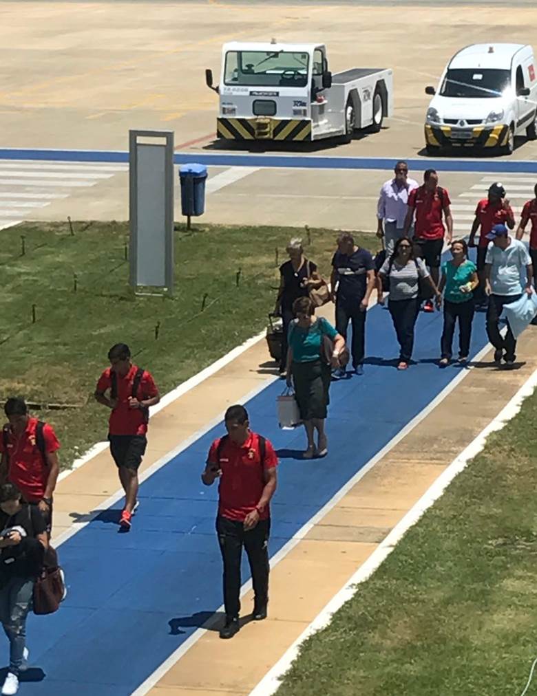 A delegação do Sport Recife desembarcou no final da manhã desta sexta-feira (3) no Aeroporto Internacional Senador Nilo Coelho, para a alegria dos torcedores petrolinenses do Leão que foram recepcionar o time.