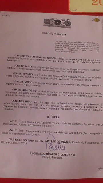 Se em Petrolina as demissões anunciadas pelo prefeito Júlio Lóssio (PMDB) causaram alvoroço, no município de Orocó (PE), Sertão do São Francisco, as coisas não são diferentes.