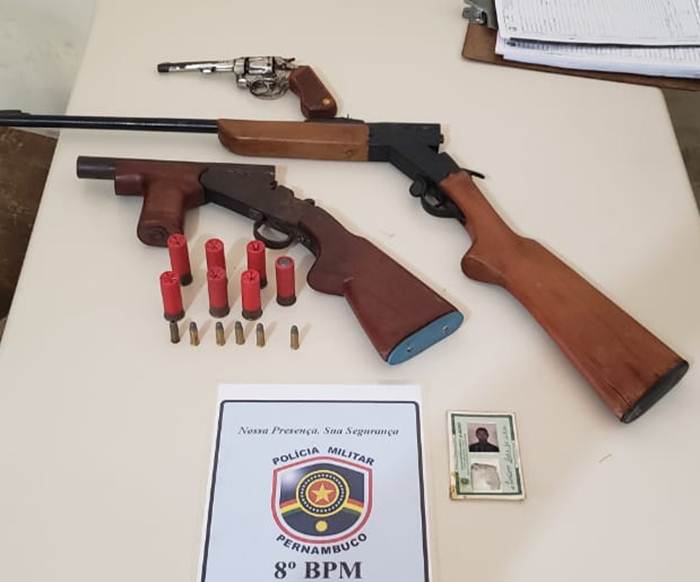 No imóvel, os PMs encontraram um revólver calibre 38 e duas espingardas, sendo uma calibre 12 e outra 32, além de várias munições de ambos os calibres. O homem foi encaminhado à delegacia local, junto com o material apreendido.