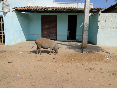Ainda ontem (17) pela manhã, um comunitário registrou a presença de porcos pelas ruas do povoado e enviou as fotos ao Blog.