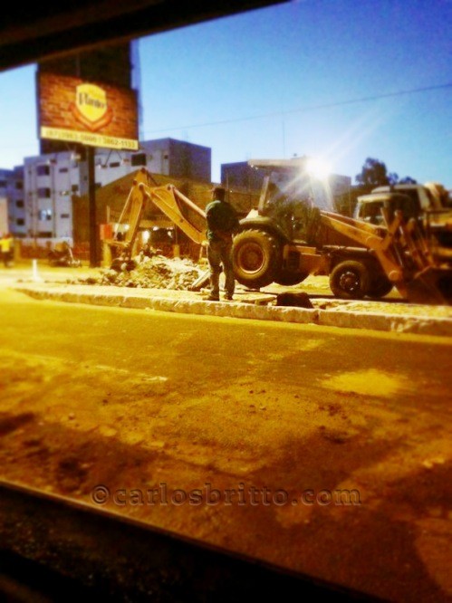 Depois da Secretaria de Infraestrutura e Mobilidade Urbana construir, sem as especificações corretas (segundo a EPTTC) e a mesma EPTTC mandar consertar, eis que surge um novo capítulo: No início da noite dessa terça (30) uma máquina da prefeitura estava lá quebrando tudo.
