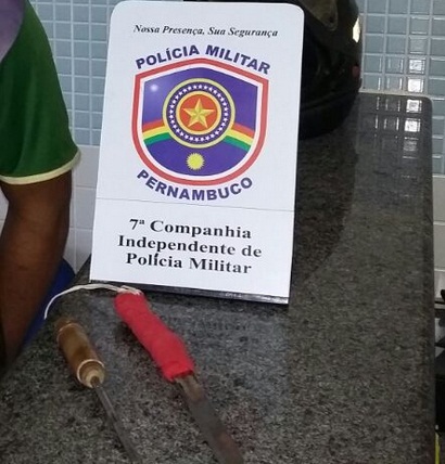 De acordo com informações da 7ª Companhia Independente de Polícia Militar (CIPM), o acusado, José Henrique Ramos – preso por furto -, estava com um chuço feito com uma parte de um ventilador e uma faca industrial.