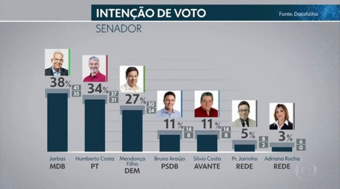 Diferente do Ibope, Datafolha mostra Jarbas na frente para o Senado, com 38%; em seguida vem Humberto, com 34%