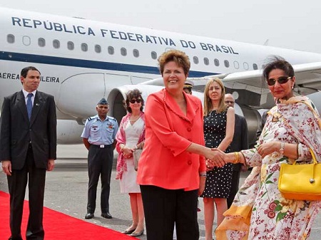 A presidente Dilma Rousseff desembarcou em Nova Délhi, na Índia, na manhã desta terça-feira (27), para participar ao longo da semana de uma reunião das potências emergentes que compõem os Brics.