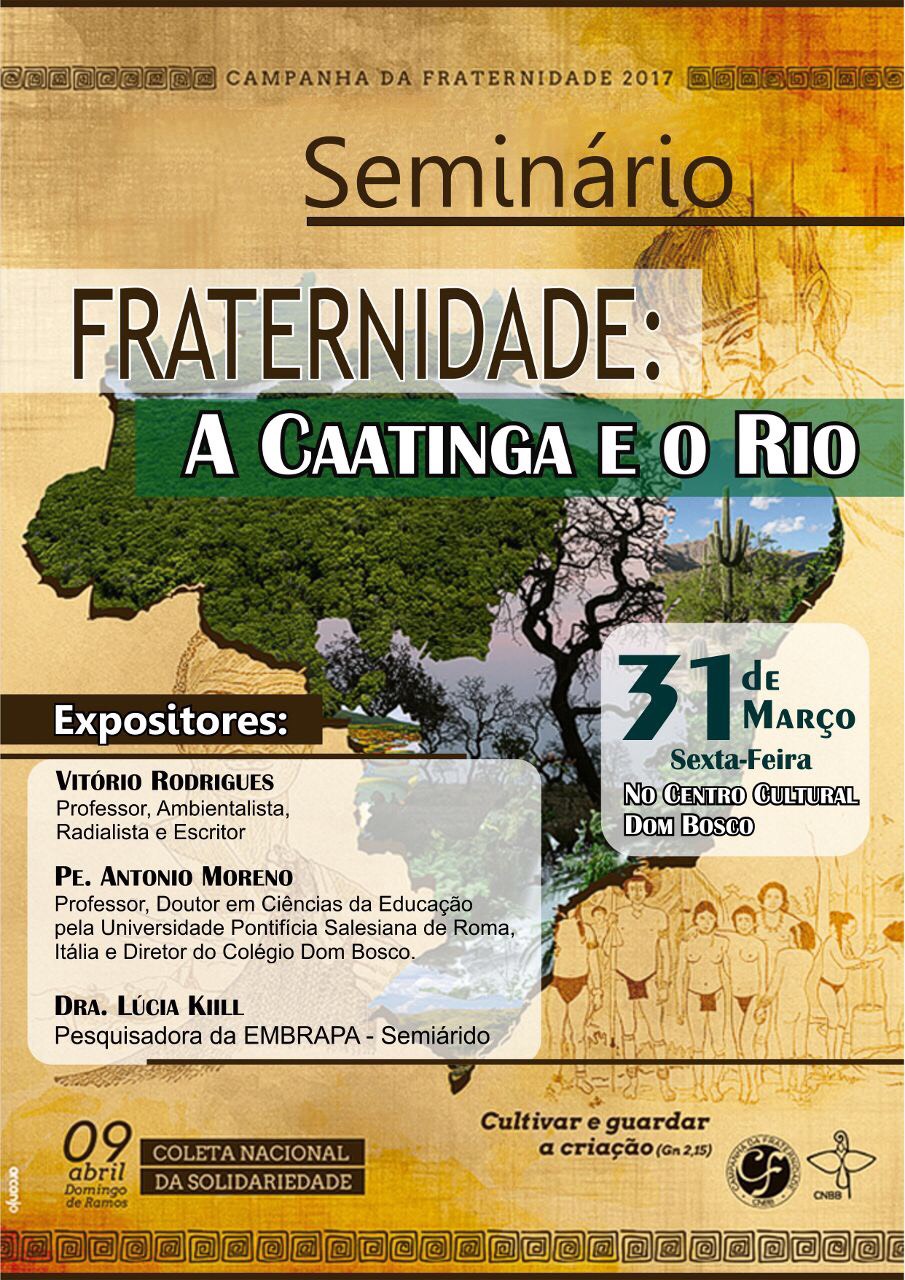 Dentro da programação da Campanha da Fraternidade 2017, que tem como tema a preservação e proteção dos biomas brasileiros, a exemplo do bioma caatinga, no semiárido nordestino, a Diocese de Petrolina programou para a próxima sexta-feira, 31, a realização do seminário- Fraternidade: A Caatinga e o Rio. O evento acontece a partir das 9h, no Centro Cultural Dom Bosco, localizado no Centro da cidade.