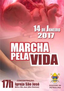 A Diocese de Petrolina realizará no dia 14 de janeiro de 2017 a ‘Marcha pela Vida’. Partindo de uma iniciativa do bispo diocesano Dom Manoel dos Reis de Farias, em sintonia com outras dioceses do Regional Nordeste II, o evento é uma resposta pública da Igreja de Petrolina à resolução do Supremo Tribunal Federal (STF), que permitirá a descriminalização do aborto até o terceiro mês de gestação.