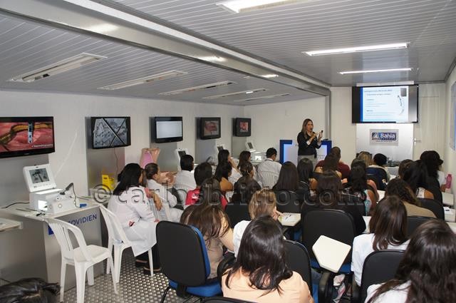 O hospital foi a terceira unidade de saúde da Bahia que recebeu o caminhão equipado com simuladores cirúrgicos, produtos de alta tecnologia e um auditório. O projeto foi viabilizado através de uma parceria entre a Covidien, líder mundial na fabricação e distribuição de soluções para a saúde, em parceria com a Secretaria de Saúde da Bahia (Sesab).As informações são da assessoria do HRJ. (Foto/divulgação)