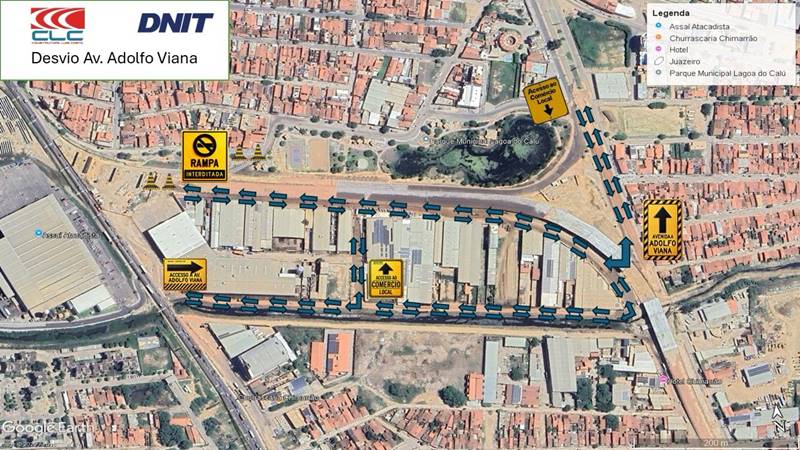 O Departamento Nacional de Infraestrutura de Transportes (DNIT) vai interditar a partir desta quinta-feira (27) a rampa de acesso à via que liga a Rua do Lago, no bairro Alto da Maravilha, ao comércio da região da BR-407, em Juazeiro (BA). Com a mudança, os motoristas deverão utilizar a Avenida Adolfo Viana, seguindo em frente e passando por baixo do Viaduto 03 para acessar a área comercial.