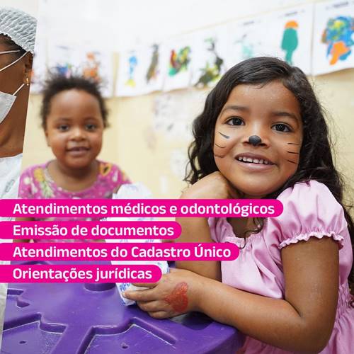 Além das secretarias municipais, mais 30 instituições parceiras também estarão presentes para disponibilizar serviços de saúde como exames laboratoriais; vacinação; consultas médicas e odontológicas; triagem audiométrica; assistência jurídica, com orientações sobre pensão alimentícia e divórcio; regularização fundiária, com cadastro para recebimento do título de posse do imóvel; Cadastro Único (CadÚnico) para atualização de dados cadastrais do auxílio Bolsa Família; emissão de RG; cortes de cabelo; Escolinha de Trânsito da AMMPLA para crianças de 2 a 8 anos; e outros.