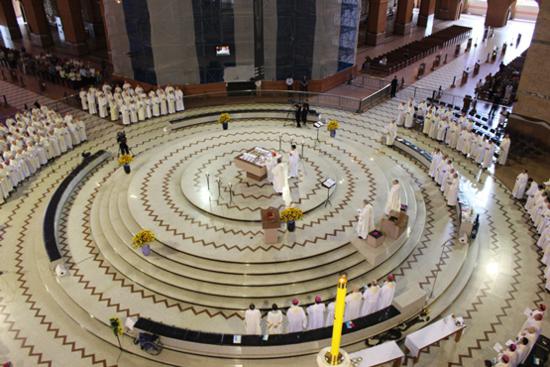 A Celebração Eucarística realizada na manhã de ontem (10) no Altar Central do Santuário Nacional de Aparecida (SP), sob a presidência do cardeal arcebispo de Aparecida e presidente da Conferência Nacional dos Bispos do Brasil (CNBB), dom Raymundo Damasceno Assis – tendo com concelebrantes o vice-presidente da CNBB e arcebispo de São Luís (MA), dom José Belisário da Silva e o secretário geral da CNBB, dom Leonardo Steiner – marcou a abertura da 51ª Assembleia Geral dos Bispos do Brasil.