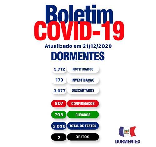 Dormentes está com 807 infectados, 798 curas e apenas dois óbitos. A Secretaria de Saúde reforça à população para manter os cuidados essenciais como uso da máscara, álcool em gel e o distanciamento social. Em caso de febre, tosse seca, cansaço, perda de paladar ou olfato e outros sintomas associados, a pessoa deve procurar a Unidade Básica de Saúde (UBS) mais próxima ou a Policlínica, das 8h às 12h, e em casos de urgência o Hospital Municipal para a realização de exames.