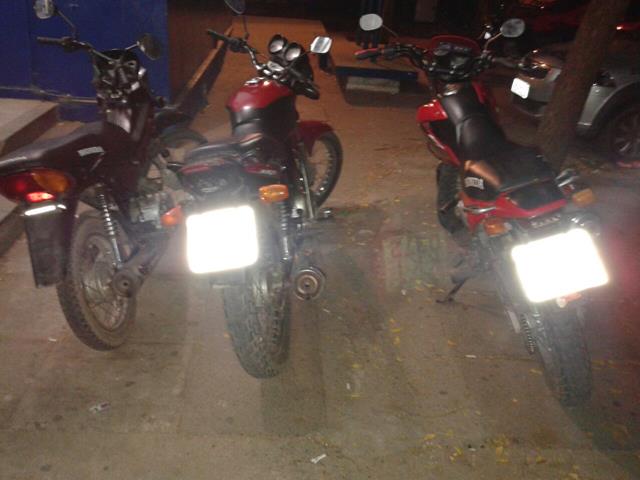Nas residências de Luiz Antônio Castro Júnior, 21 anos, e Gilberto Alves Almeida, 32, policiais militares do Grupo de Apoio Tático Itinerante (Gati), do 5º Batalhão, apreenderam três motocicletas roubadas – uma delas uma Honda Bros vermelha, placa KGU-0731; a outra, uma Honda CG 150 da mesma cor, placa KKI-0372; e a terceira, mais uma Honda Pop 100, cor preta e placa KIG-8369.