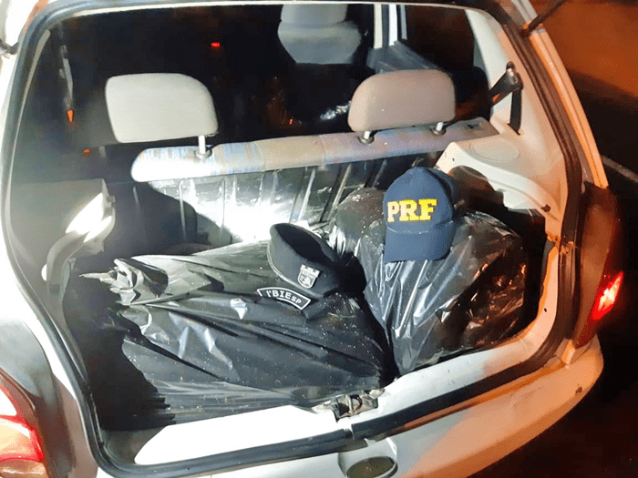 Ao verificar o porta-malas e o interior do segundo veículo, foram encontrados três sacos de lixo recheados com a droga. O motorista do primeiro veículo informou que havia sido contratado pelo outro condutor para acompanhar o transporte do entorpecente.