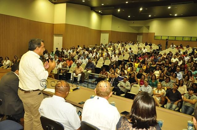 Explica-se: além de serem empossados, os profissionais ainda tiveram a satisfação de ouvir, de viva voz do prefeito Isaac Carvalho, o anúncio do aumento salarial dos professores. O percentual de reajuste será de 8,32% – estabelecido pelo Ministério da Educação (MEC). (Fonte/foto: Ascom PMJ)