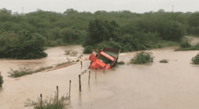 Em Bodocó, chuvas intensas fazem rio transbordar e deixam estrada intrafegável