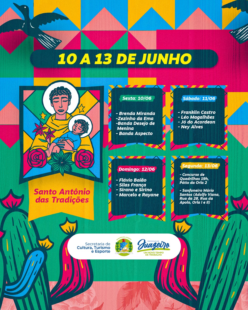 Além da programação para comemorar o Dia de Santo Antônio, o município também irá realizar o São João dos Bairros, que está no período de cadastramento das comunidades que desejam realizar o festejo. O período de inscrição irá até o próximo dia 12 de junho.