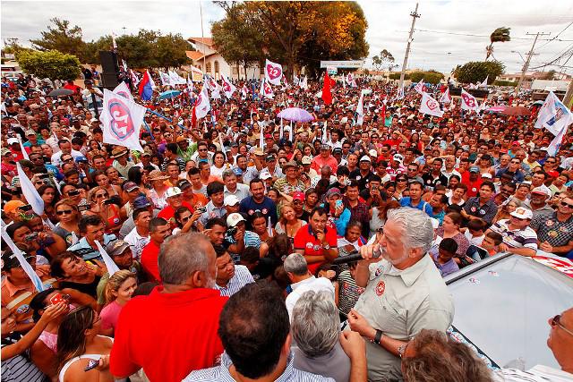 Wagner aproveitou para lembrar que não apenas ele, mas também a presidente Dilma Rousseff e o ex-presidente Lula também estão com Xavier. E ressaltou a importância do alinhamento político entre os governos federal, estadual e municipal para a continuação dos investimentos na cidade. Depois do comício, um grande arrastão – que não estava previsto – aconteceu em direção ao bairro da Vila Massu. (Foto: Assessoria coligação)