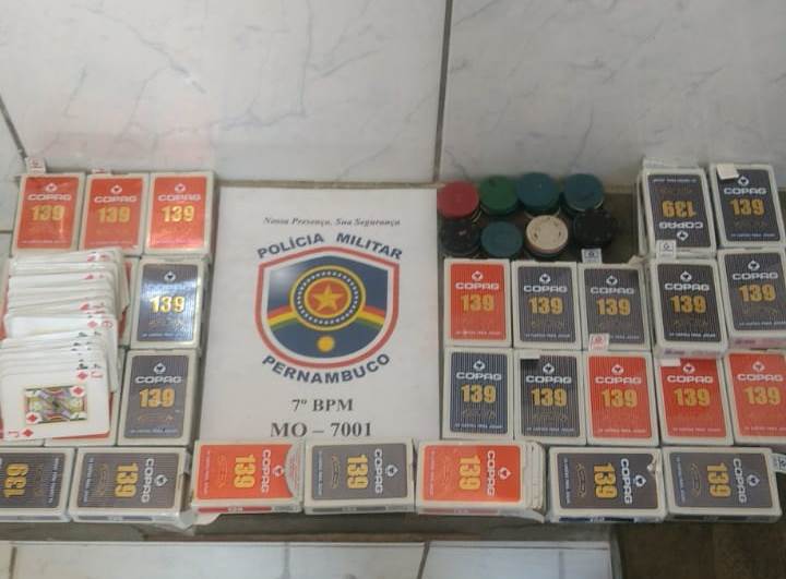Policiais militares do 7º Batalhão (BPM) conduziram à delegacia na manhã de ontem (24) em Exu (PE), Sertão do Araripe, três homens pela prática de jogos de azar. A denúncia foi repassada à equipe do 7º BPM por populares, os quais alegaram que na Rua São Jorge, do Bairro Populares Velhas – onde os jogos aconteciam – estavam ocorrendo brigas e confusões.