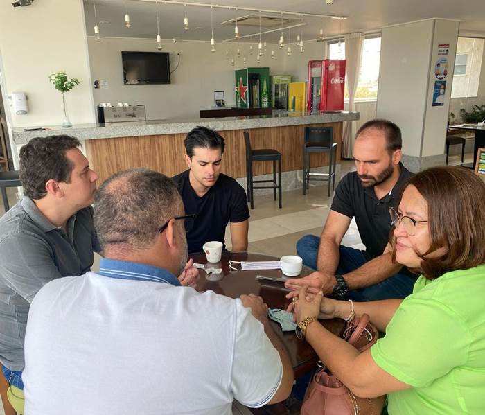 Cumprindo agenda na região neste final de semana, o deputado federal Eduardo Bolsonaro reuniu-se neste domingo (9) com a prefeita de Juazeiro (BA), Suzana Ramos. Também participaram do encontro o secretário de Obras e Desenvolvimento Urbano, Anderson Freire, o chefe de gabinete Ciro Viana e o vereador da Câmara Municipal de Salvador, Alexandre Aleluia.