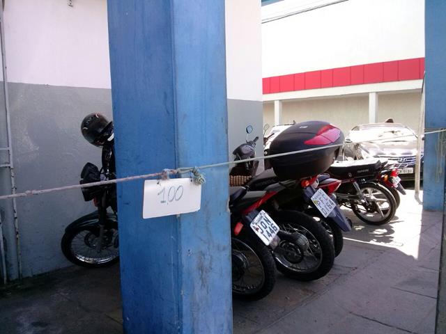 estacionamento motos flanelinhas (1)estacionamento motos flanelinhas (2)Uma prática ilegal vem chamando atenção no Centro de Petrolina. Flanelinhas estão ‘privatizando’ uma calçada na Avenida Souza Filho, nas imediações da agência Santander, para cobrar pelo estacionamento de motocicletas. Até placa com o valor da vaga (R$ 1) foi estampada para quem quiser ver.