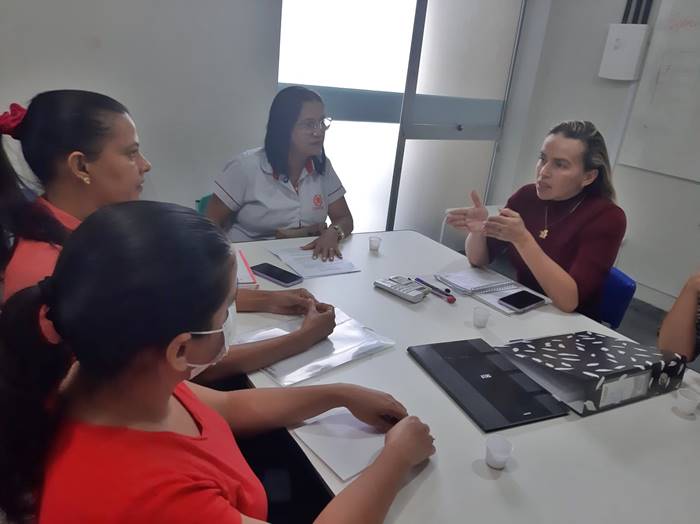 Na primeira reunião do CAE em 2022, a vice-presidente do Sindsemp, professora Inês Silva, e a diretora de assuntos extraordinários, professora Katiane Santos, apresentaram as demandas sobre a merenda escolar que chegam ao sindicato.